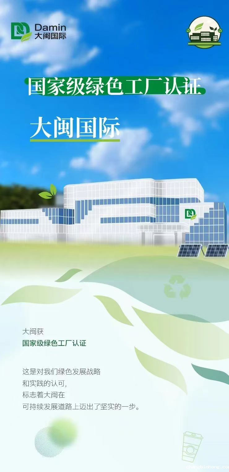 大闽获国家级绿色工厂认证,践行可持续发展绿色环保承诺