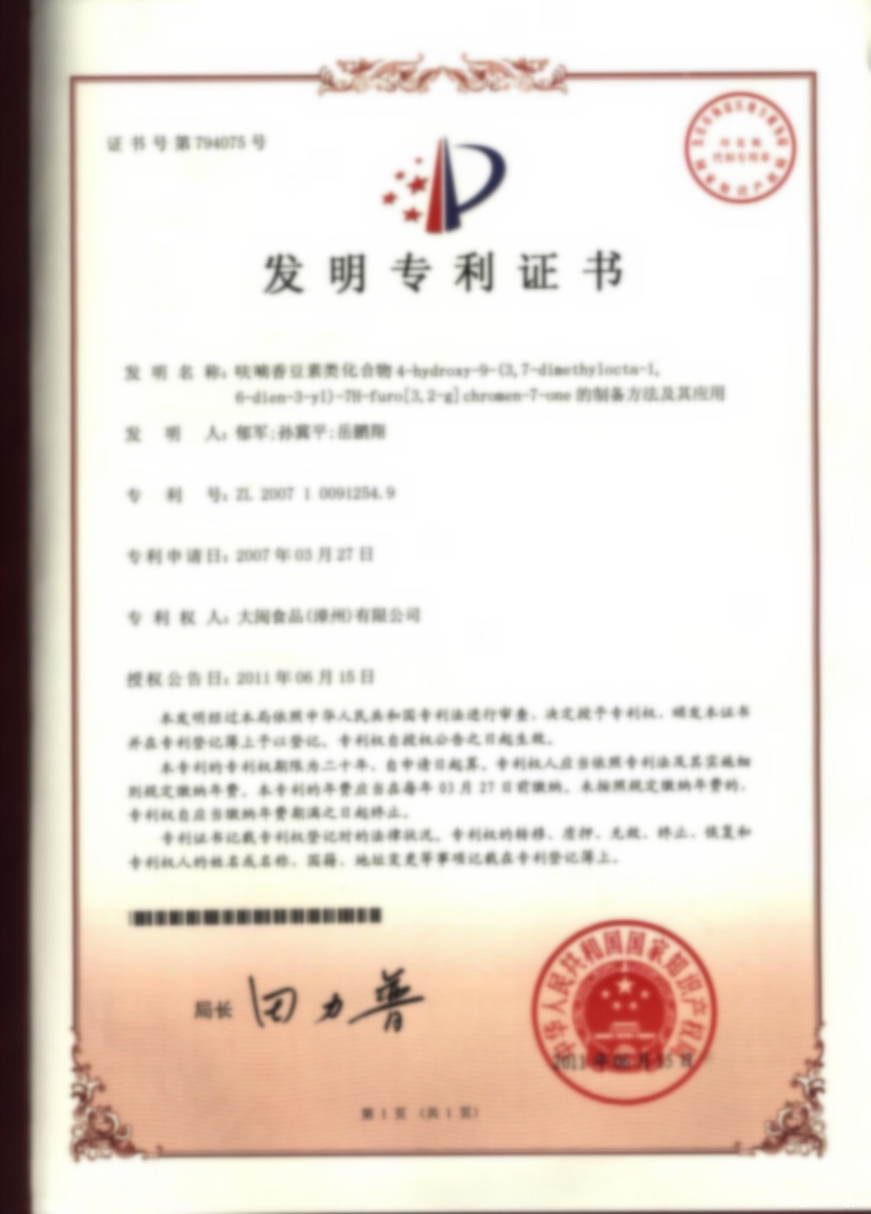 ZL 2007 1 0091254.9